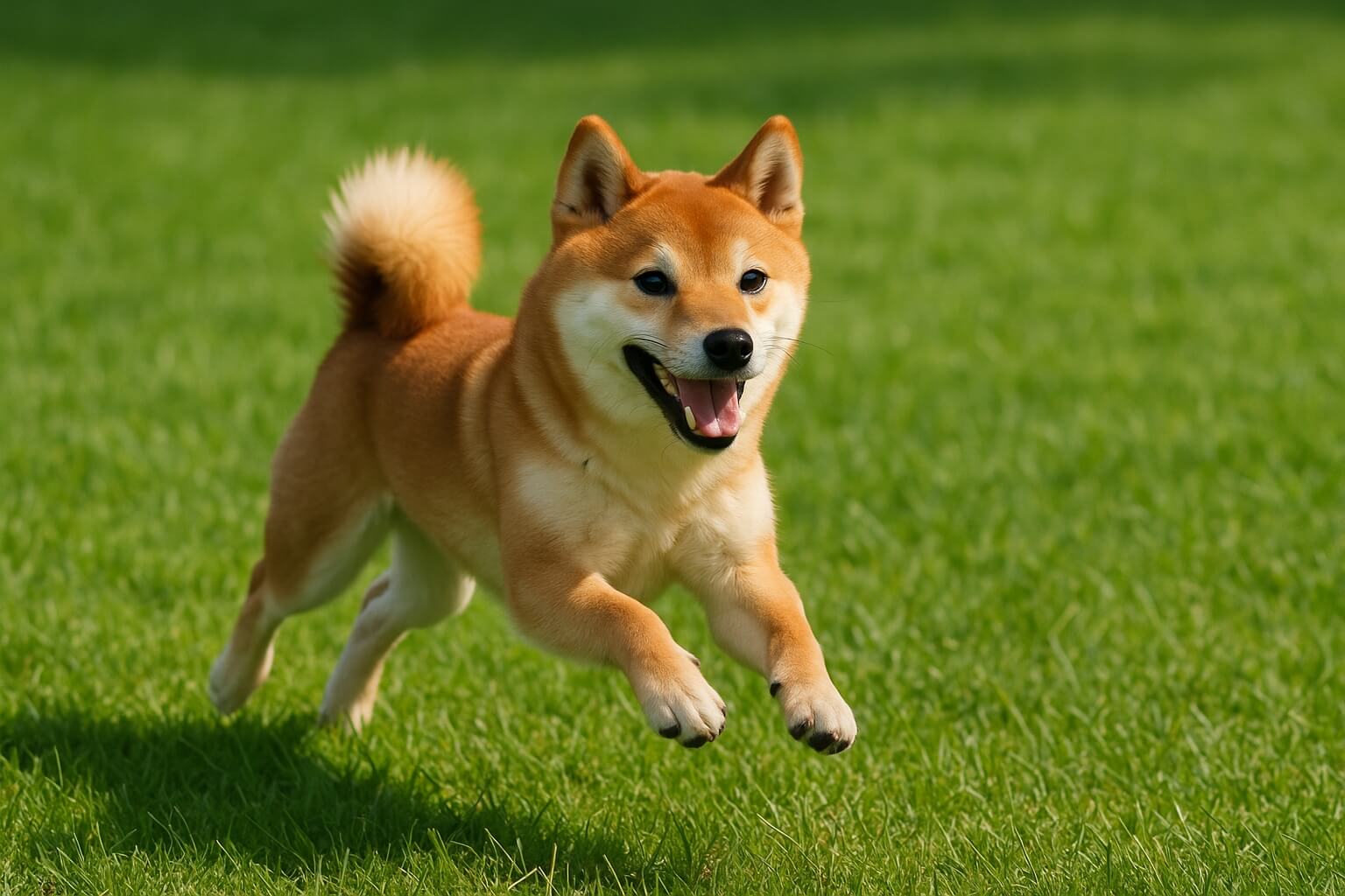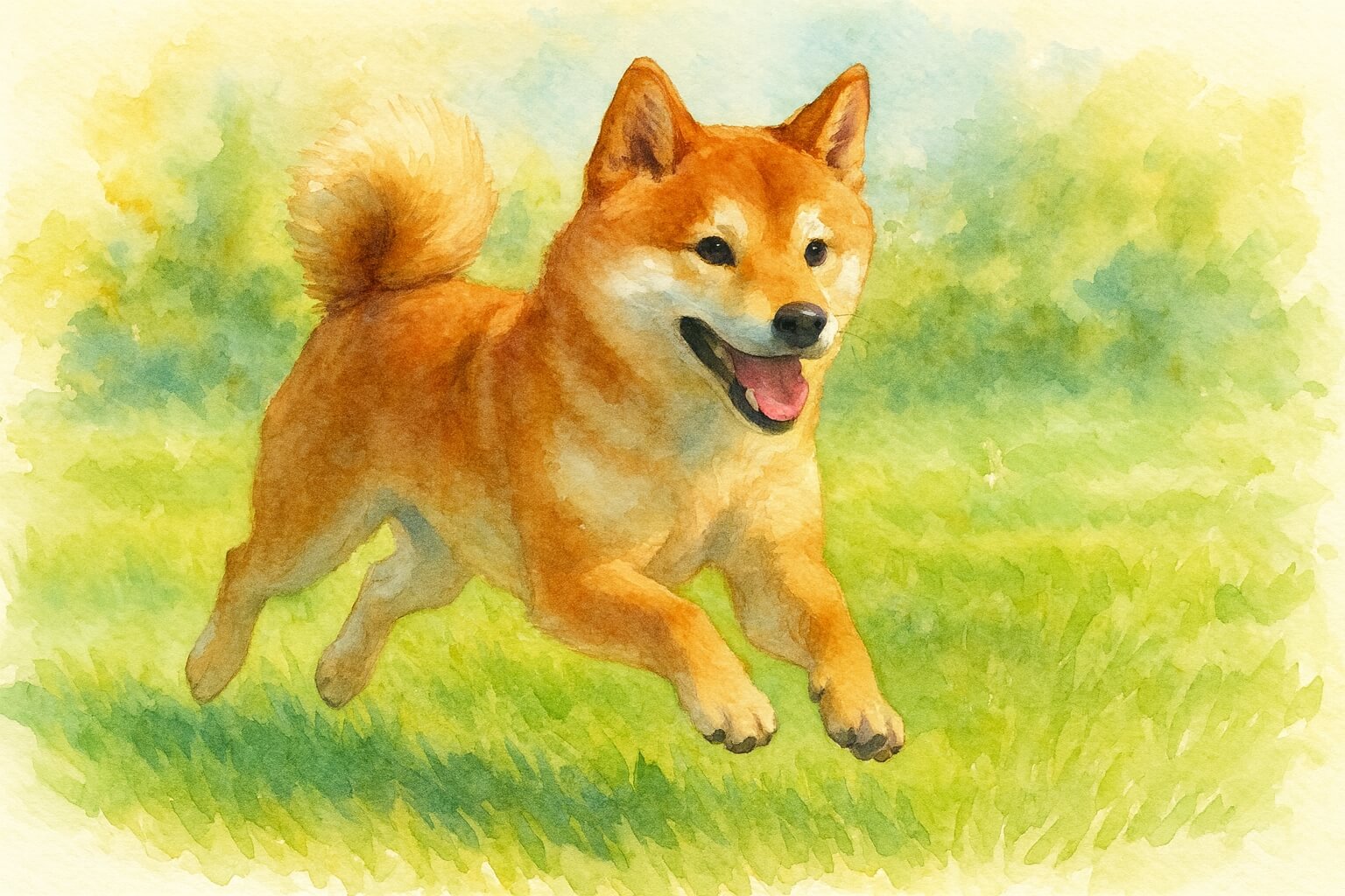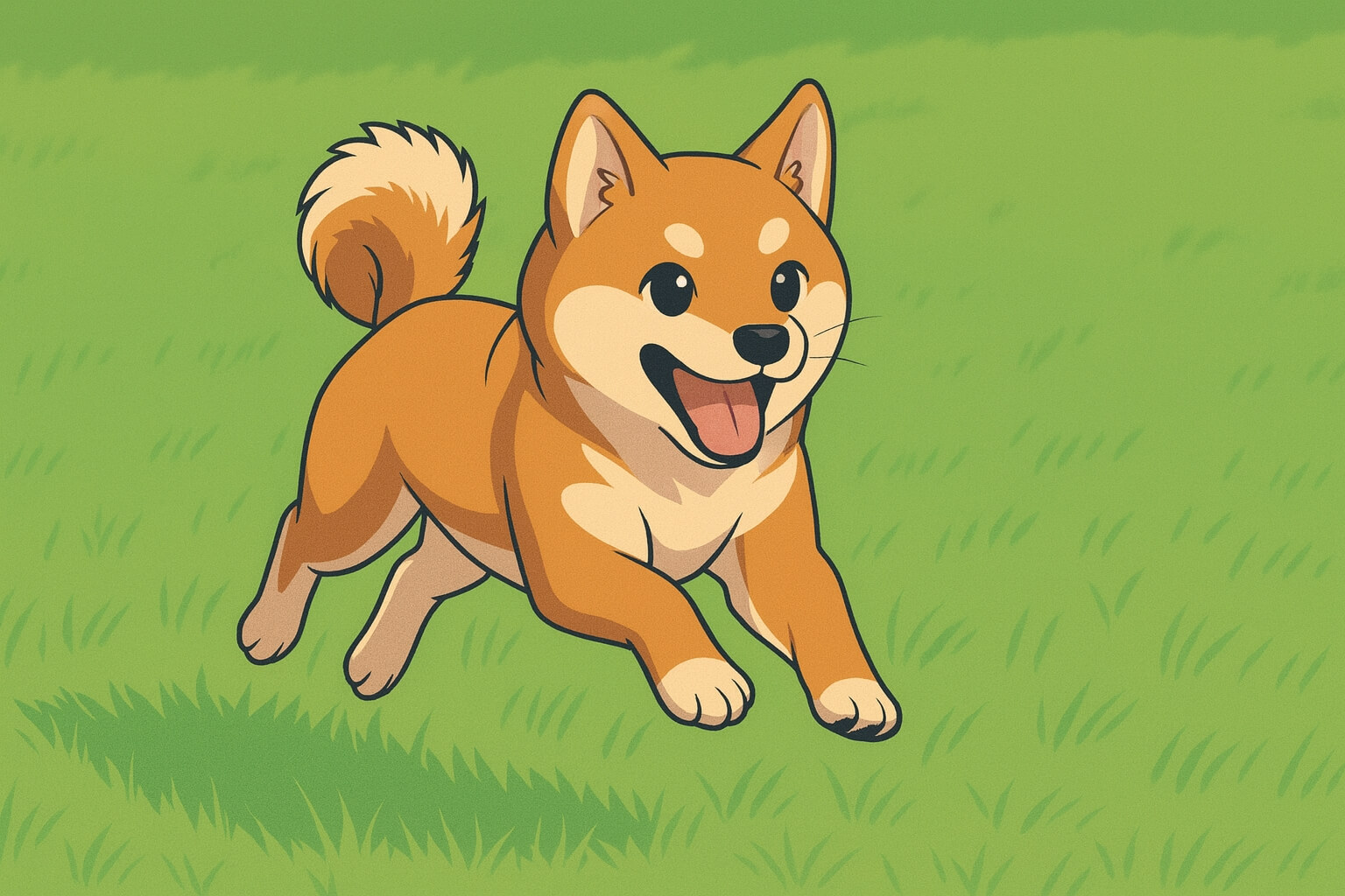 以下は、「芝生を駆け回る柴犬」とプロンプトを入力して生成された画像です。