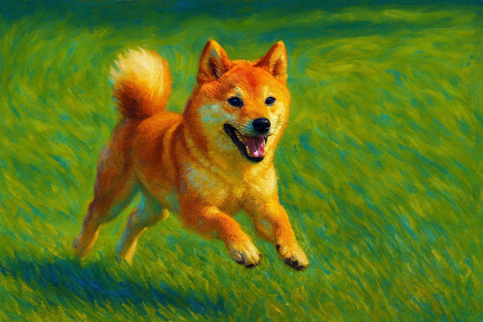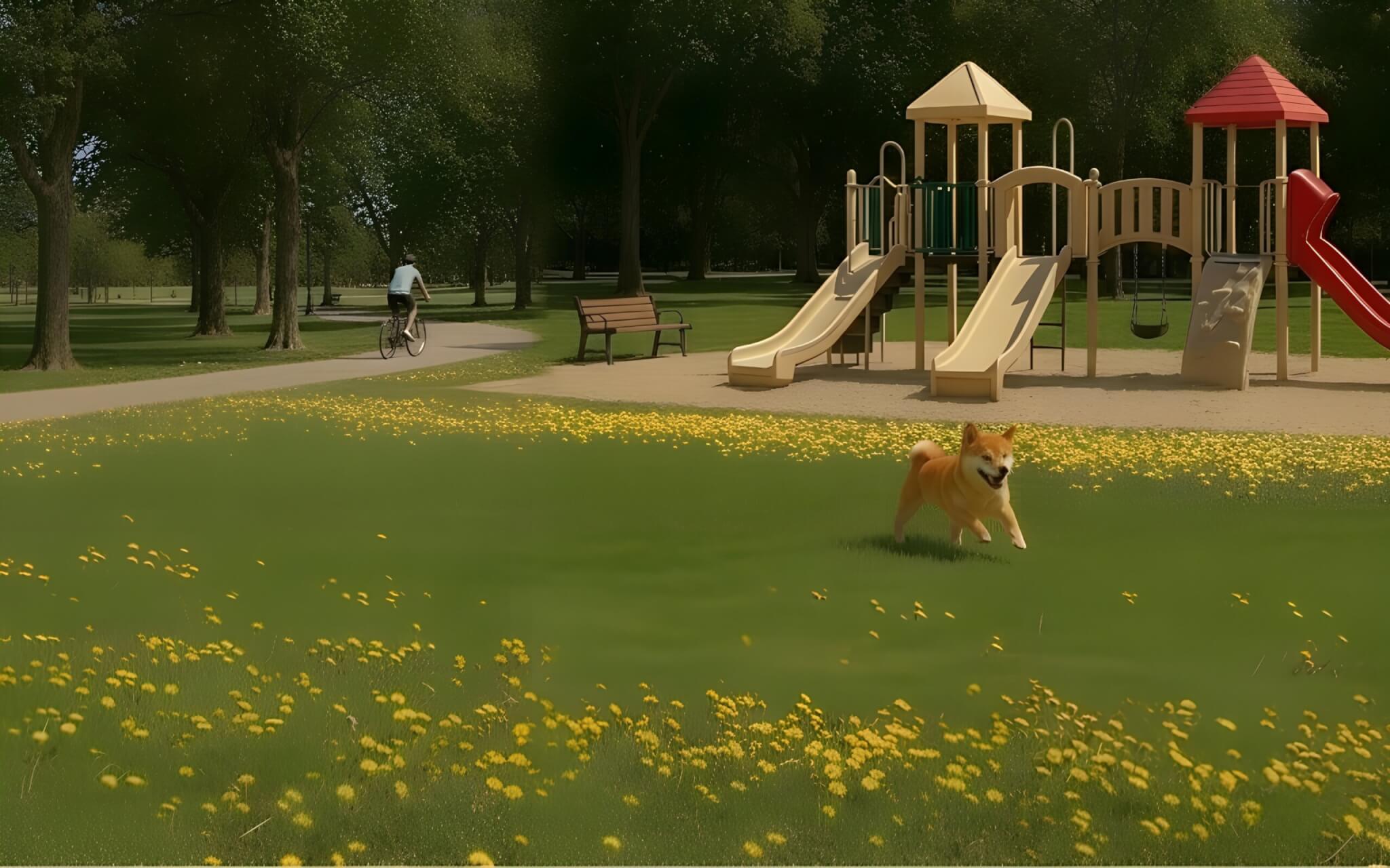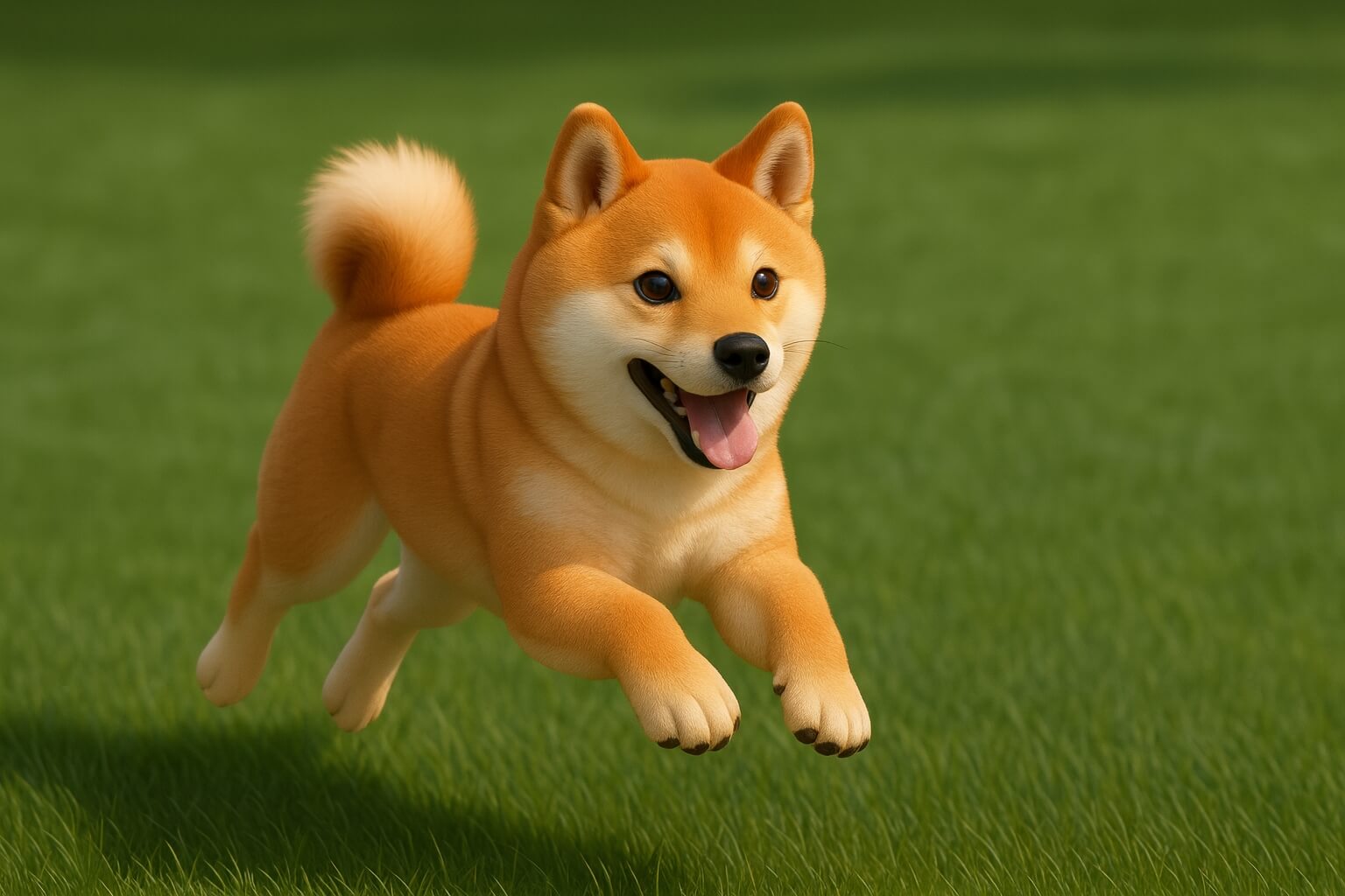 以下は、「芝生を駆け回る柴犬」とプロンプトを入力して生成された画像です。