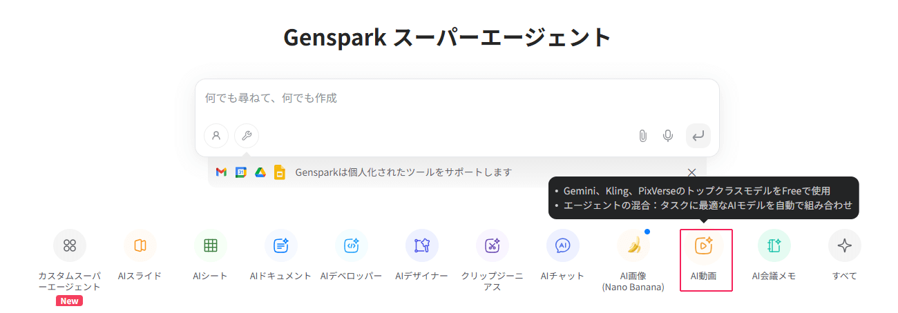 Gensparkは、操作の分かりやすさとモデルの選択肢の広さが両立しており、初心者でも迷わずに始められます。