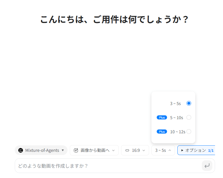 無料プランでは3〜5秒程度の短いプレビューが中心ですが、PlusやProに切り替えると3〜12秒の安定した長さで生成でき、モデルによっては1080pの高解像度出力も利用可能です。