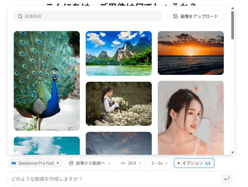 生成済みの画像や過去の動画など、ユーザーが手元に持つ素材を自然に活かせるため、イメージの一貫性を保ちながら短時間で仕上げられる制作環境を整えています。