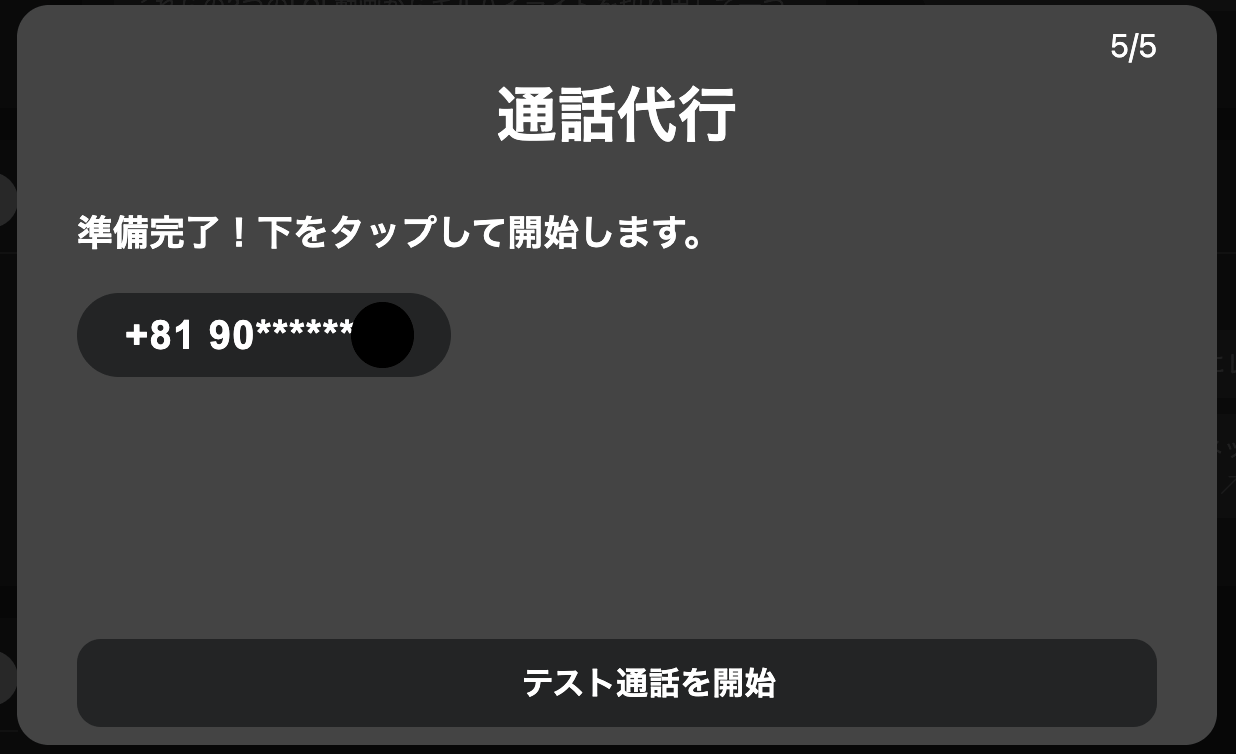 「テスト通話を開始」をクリックするとテスト通話が開始されます。