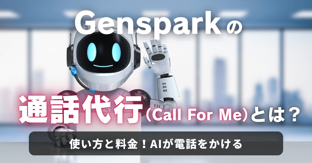 GensparkのCall For Meは、2025年5月22日、個人向け通話代行の提供開始(拡大)を告知された電話代行サービスとAIアシスタントの中間に位置するサービスです。