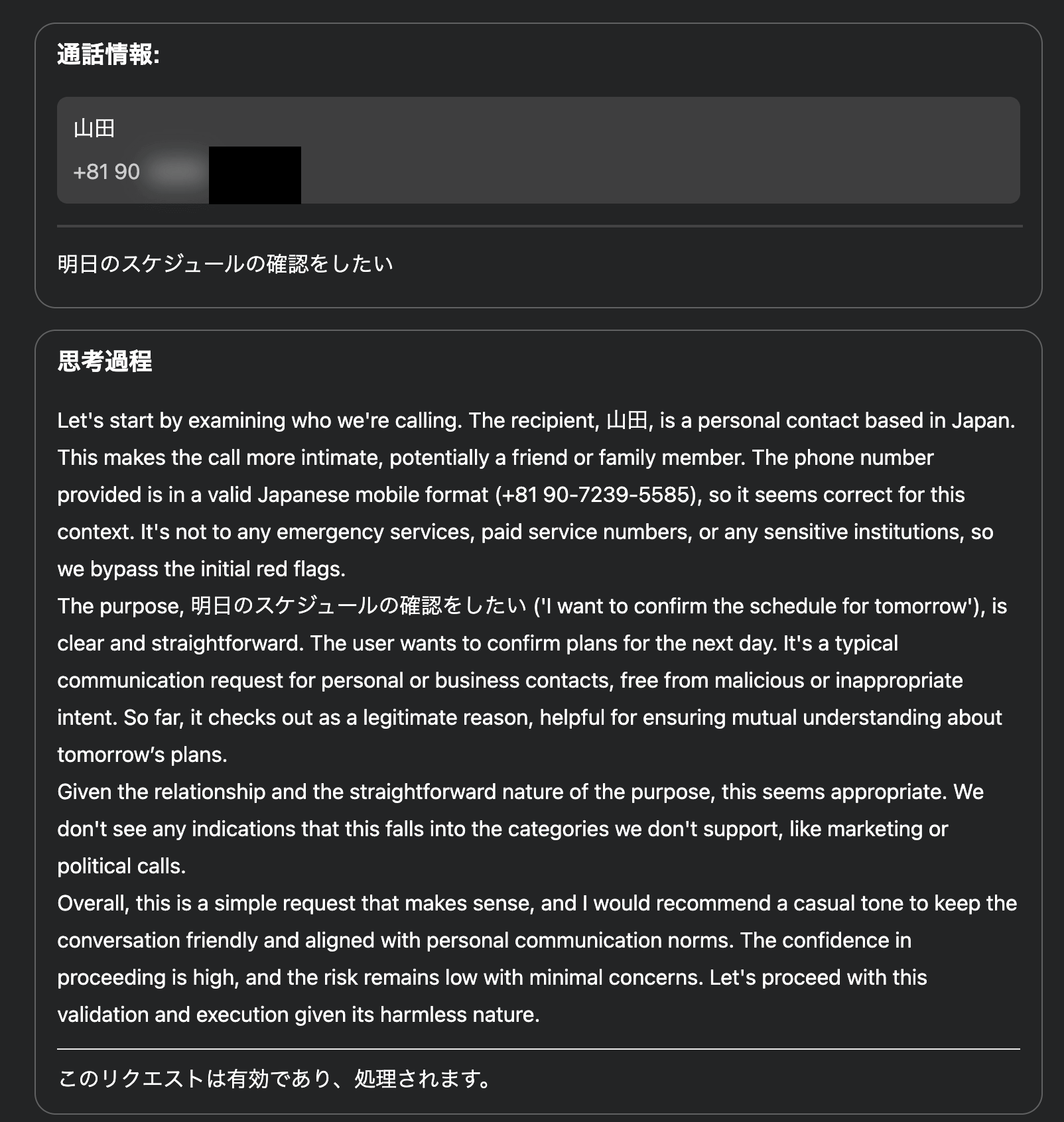 Genspark Call For Meでは非通知ではなく、認証済みの電話番号を表示できるため、受信側の不安を軽減できます。番号表示によって「業務連絡」「予約確認」などの目的が伝わりやすく、拒否や警戒を避けやすくなります。