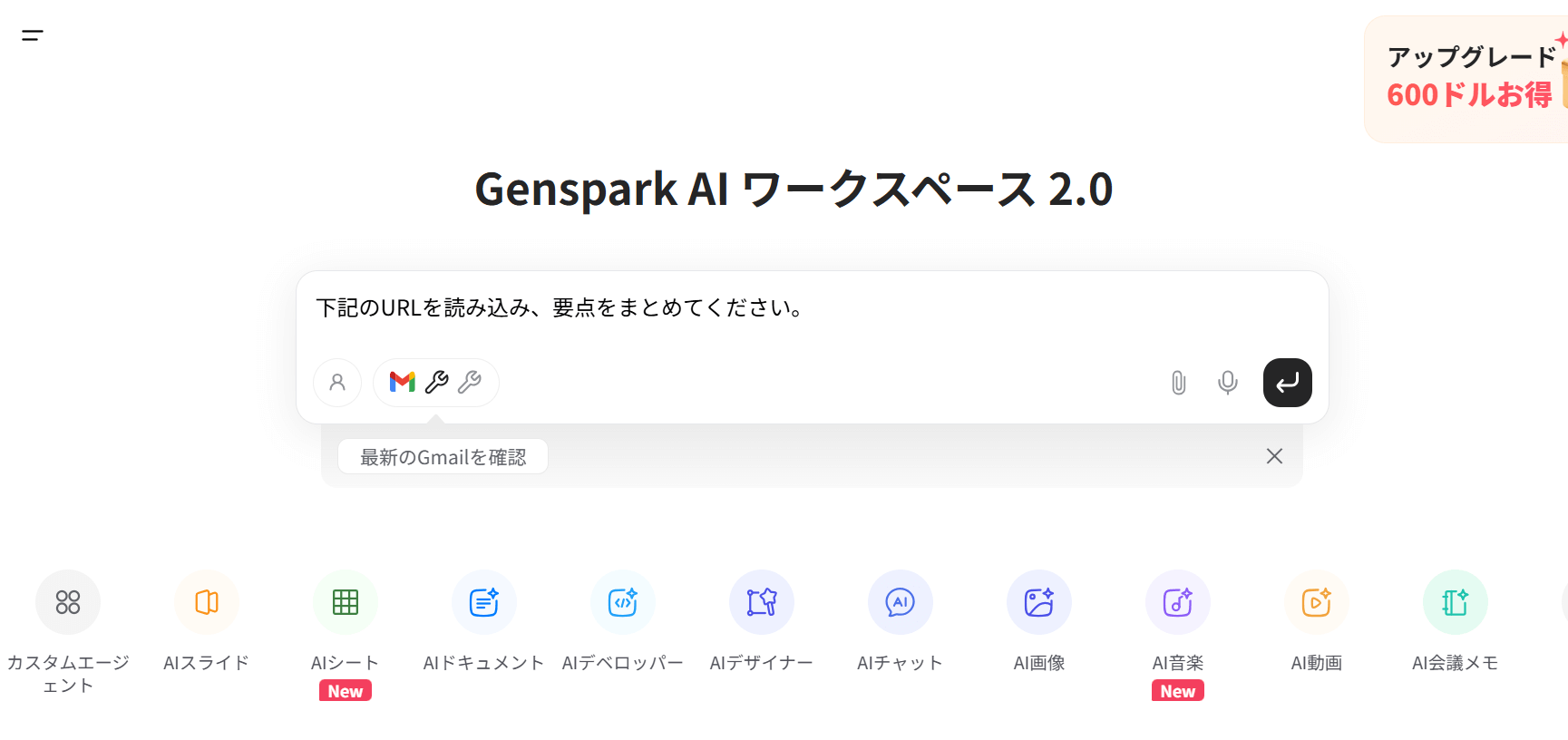 Gensparkに論文のURLや技術文書のリンクを入力すると、自動的に内容を読み込み、重要なポイントを箇条書きで抽出してくれます。URLとあわせて「URLを読み取り、要点をまとめてください。」と入力します。