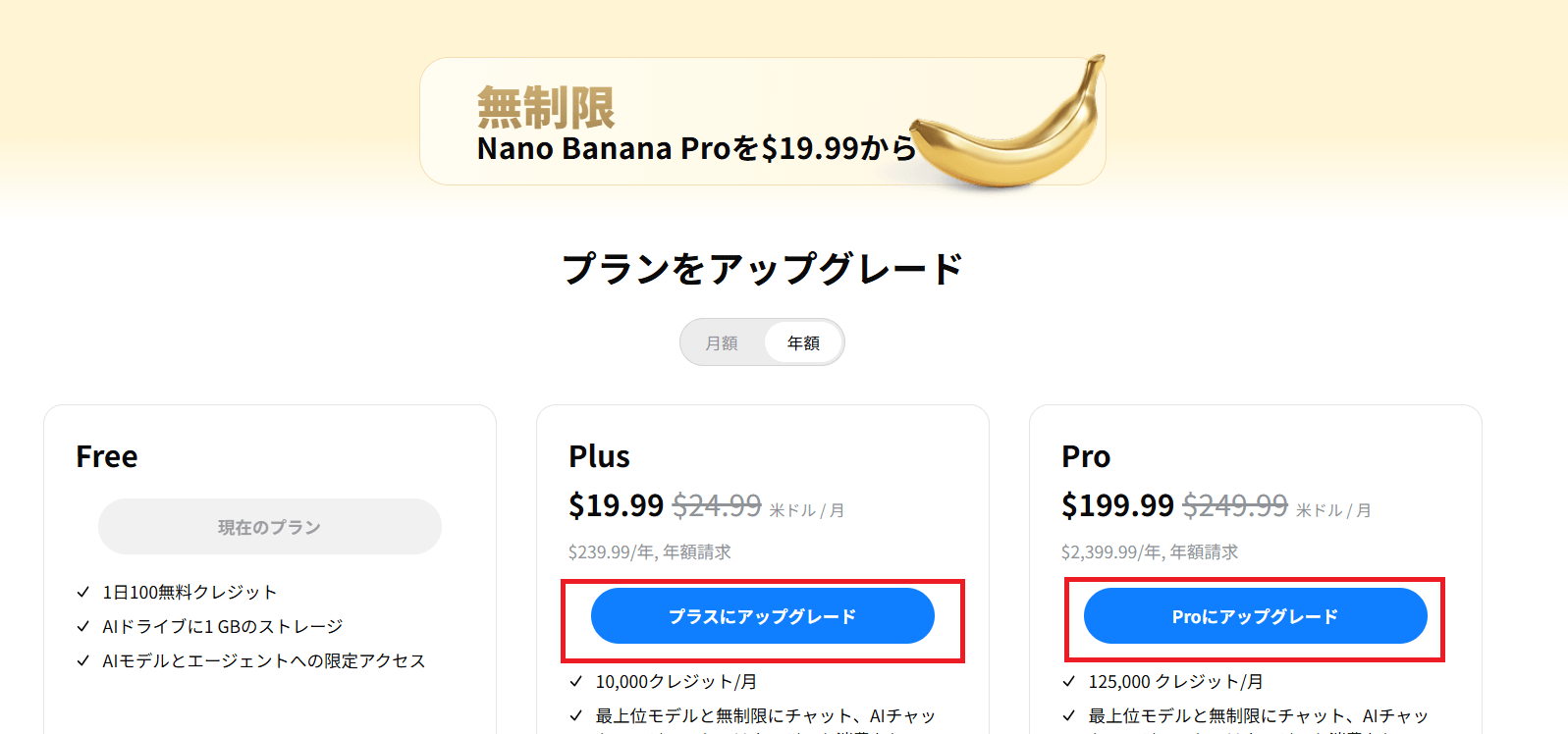 通常のチャットや検索がメインであれば、無料プランで実行可能です。しかし、Nano Banana Proを使用した高精度な画像生成を複数回利用する場合は、有料プランへの加入が必要になります。