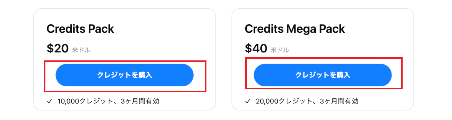 なお、追加購入したクレジットには3か月の有効期限が設定されています。月間クレジットを使い切れない状態で追加クレジットを購入すると、期限切れで失効してしまう可能性があるため注意が必要です。