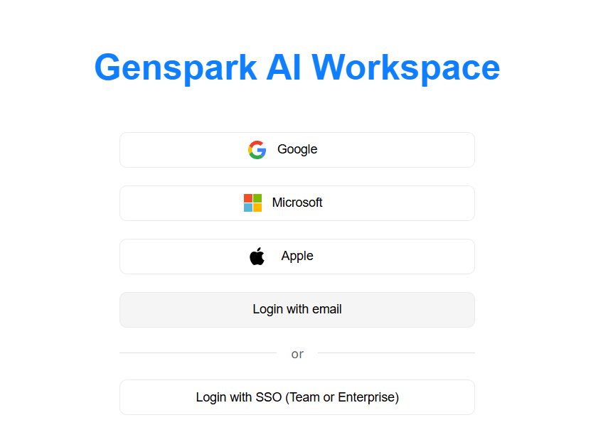 公式サイトからサインインするアプリのアイコンを選択し、Gensparkにログインします。