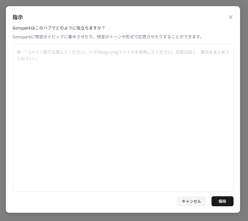Genspark Hubでは、各プロジェクト専用のカスタム指示(カスタムインストラクション)を設定することで、AIエージェントの出力を統一できます。