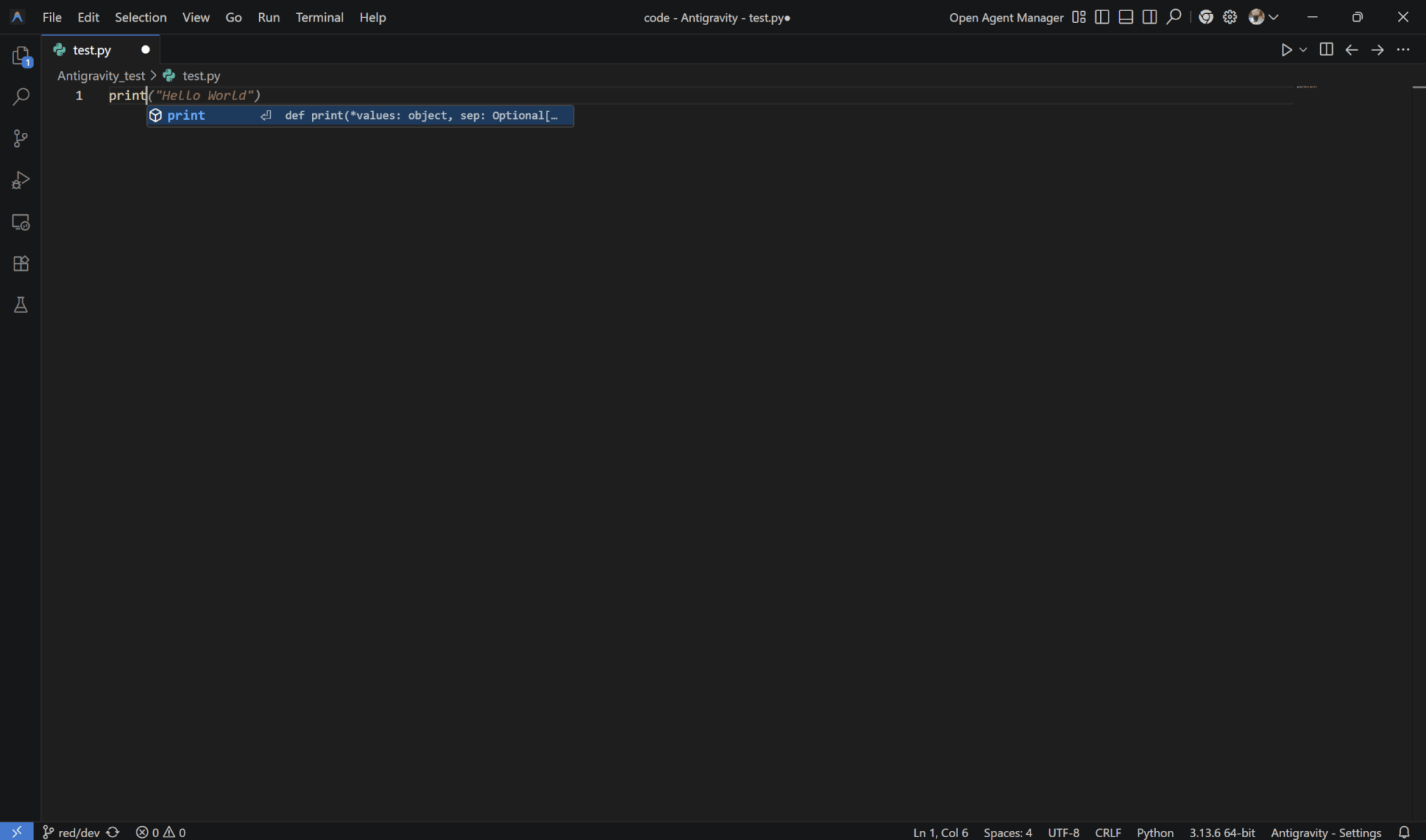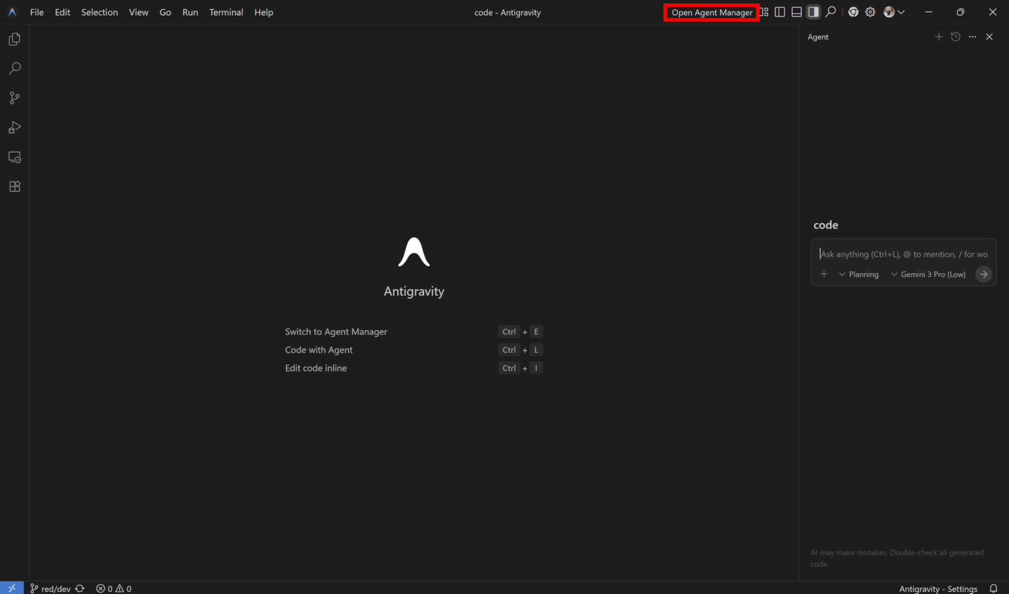 このIDEの最大の特徴は、インターフェースがEditorビューとAgent Managerという2つの明確な役割に分かれている点です。