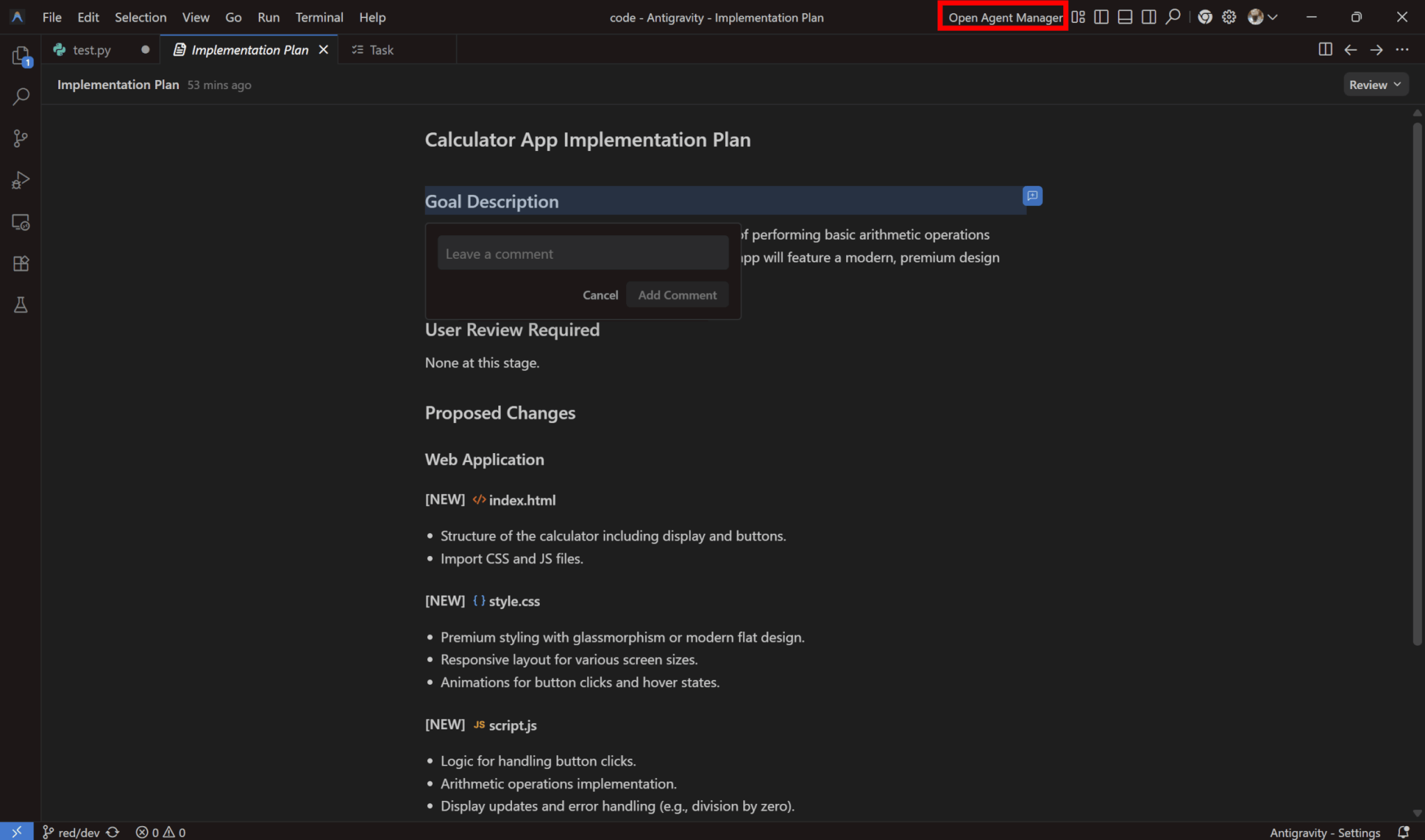 ユーザーが直接実装する作業はEditorで行い、プロジェクト管理やAIへの指示出しはAgent Managerで行うという分業体制が敷かれています。この分離により、AIの複雑な処理プロセスが、コーディング時の集中を妨げることを防いでいます。