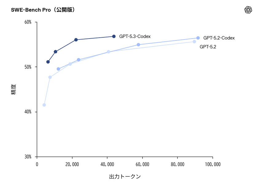 複数のベンチマークの結果により、GPT‑5.3‑Codexは従来のモデルよりも高い精度の開発支援が可能と言えます。