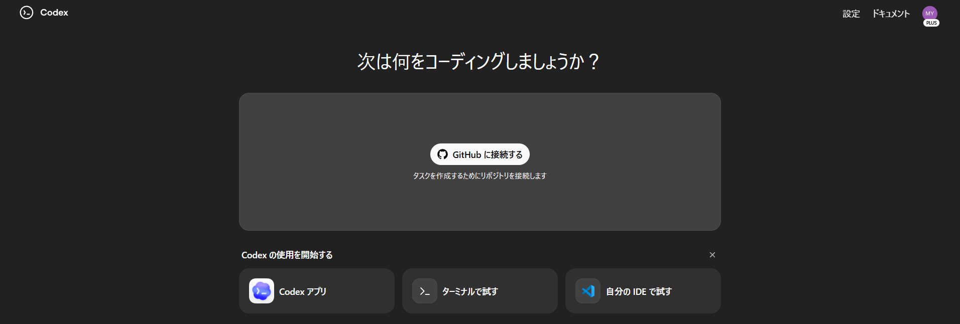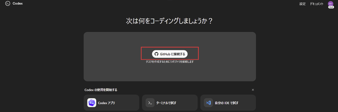 CodexとGitHubを連携させるため、「GitHubに接続する」ボタンをクリックしてください。
