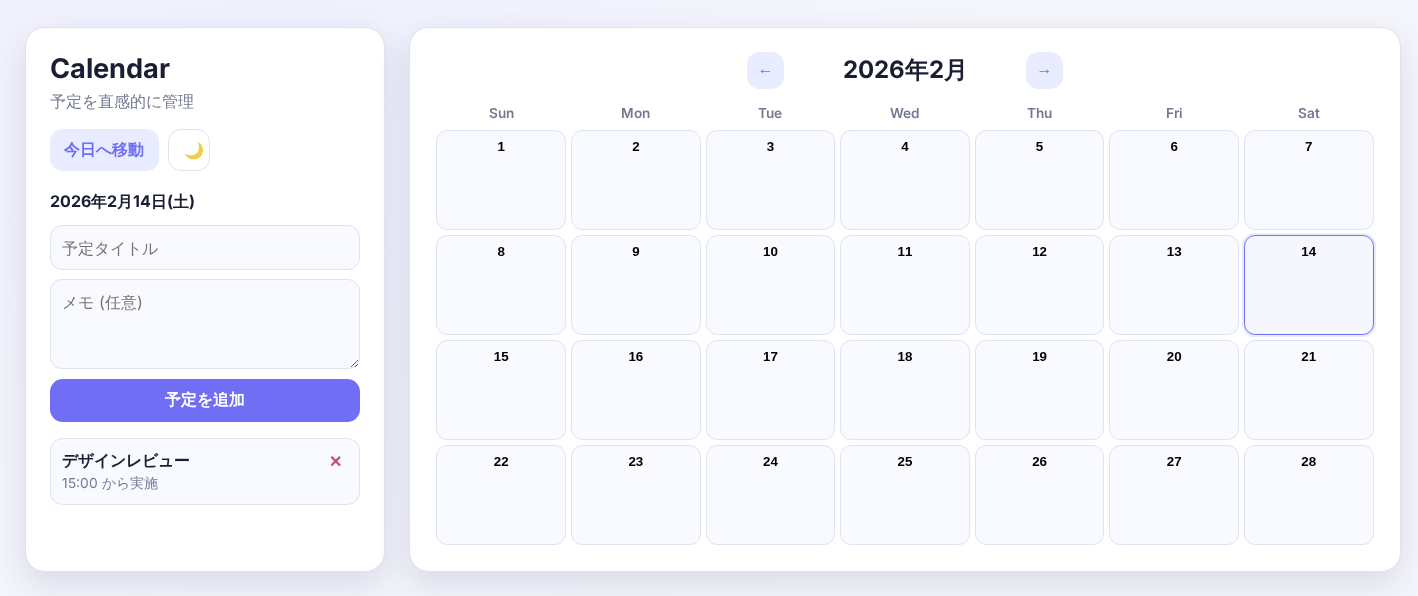 なお、今回は以下のようなカレンダーアプリが作成されました。