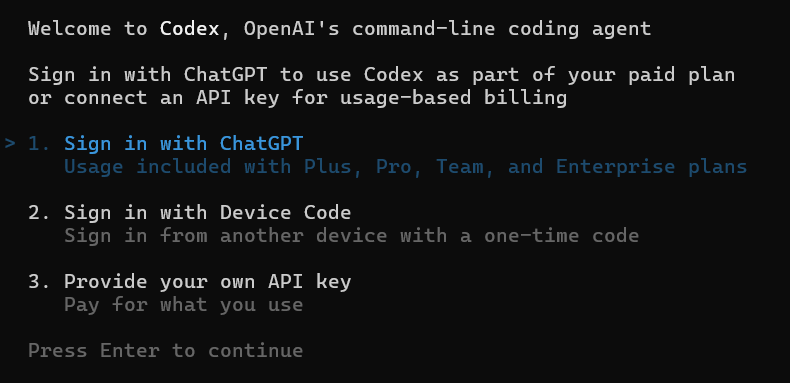 ChatGPTアカウントを使ったCodex CLIの操作手順は以下の通りです。