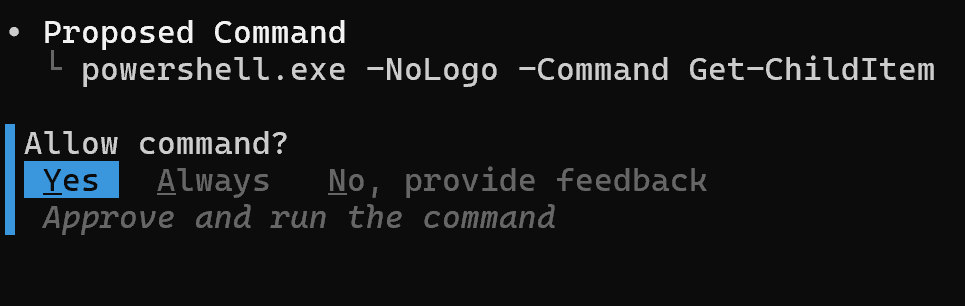 ファイルシステムの書き込みや外部コマンドの実行といった、影響の大きい操作を行う際には、ユーザーの明示的な許可を求める承認モードが介入し、意図しない変更からシステムを保護します。