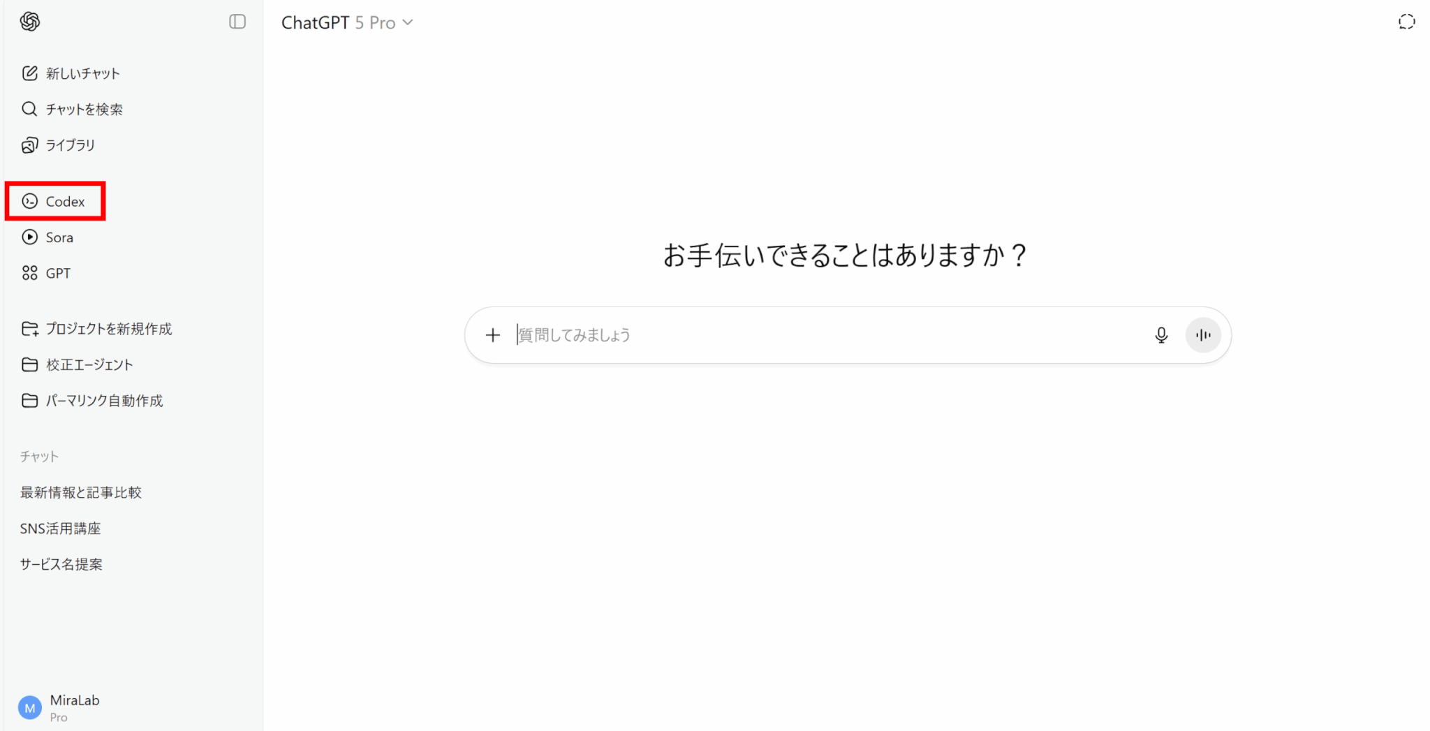 これらの機能はChatGPTの有料プランに含まれる形で提供されています。ChatGPTの通常チャットとは異なり、左メニュー「Codex」など専用UIから利用するため注意が必要です。