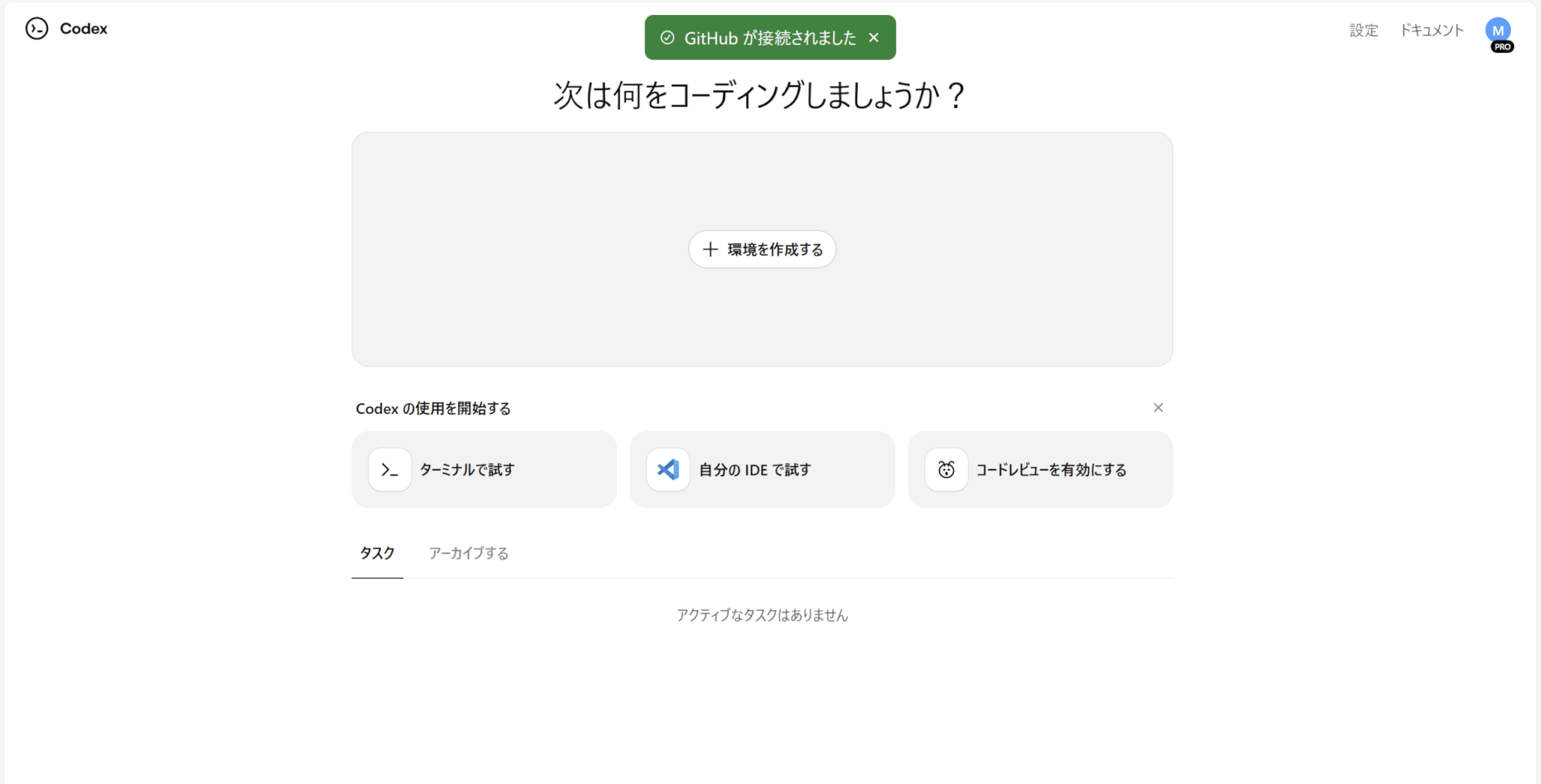 CodexをGitHubのコードレビューで使うためには、Codex CloudでGitHub連携をしておく必要があります。