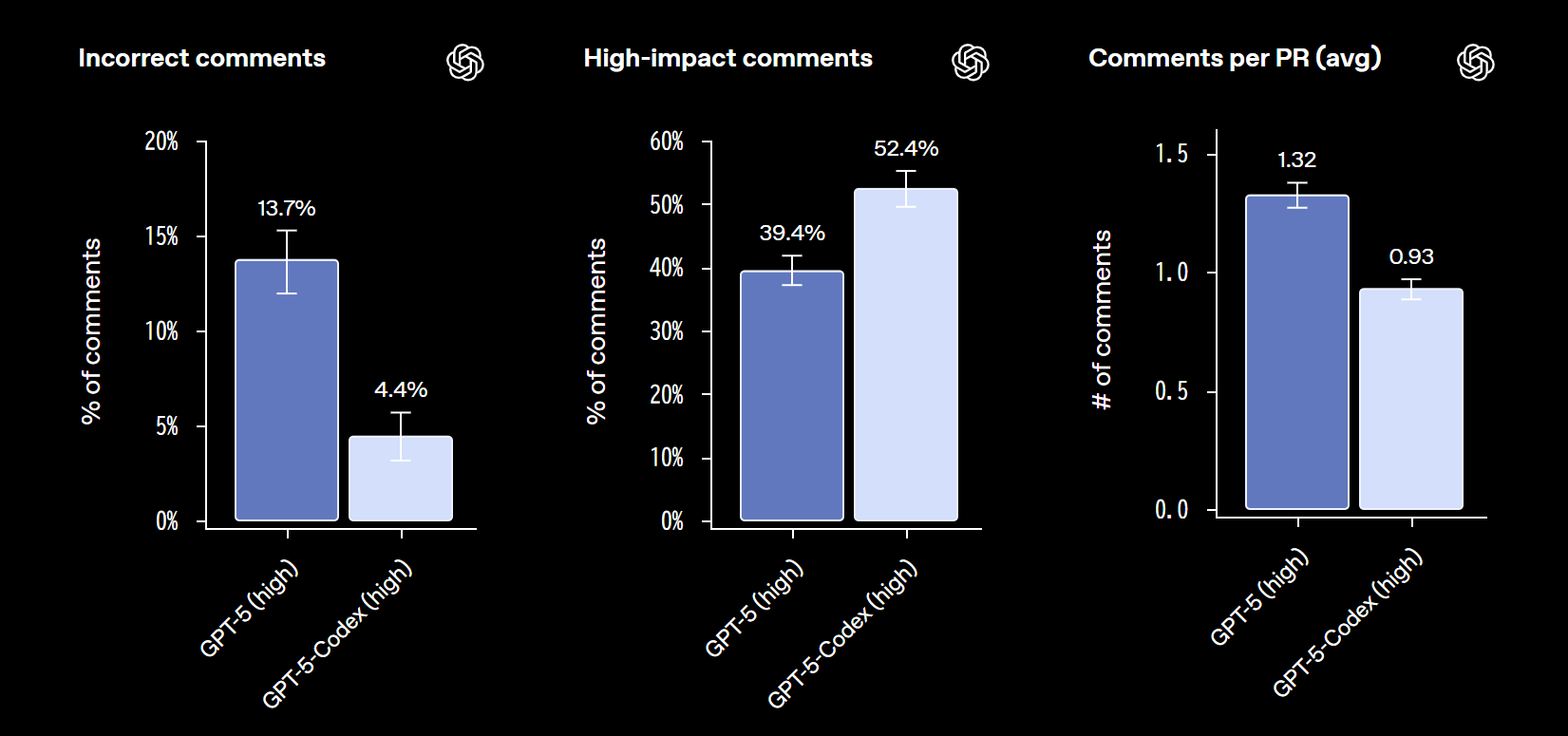 さらに、GPT-5と比べて誤りのあるコメントが減り、役立つコメントが増えるなどコメントの品質が飛躍的に向上しました。