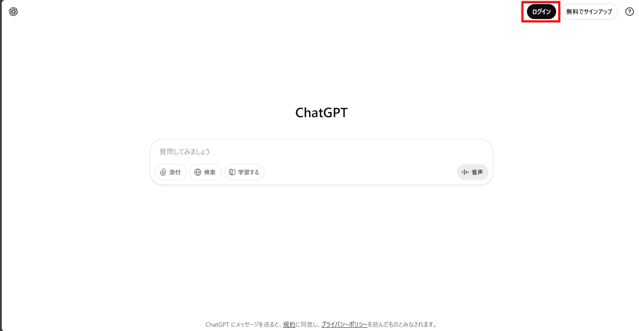 まずはChatGPTにログインしましょう。