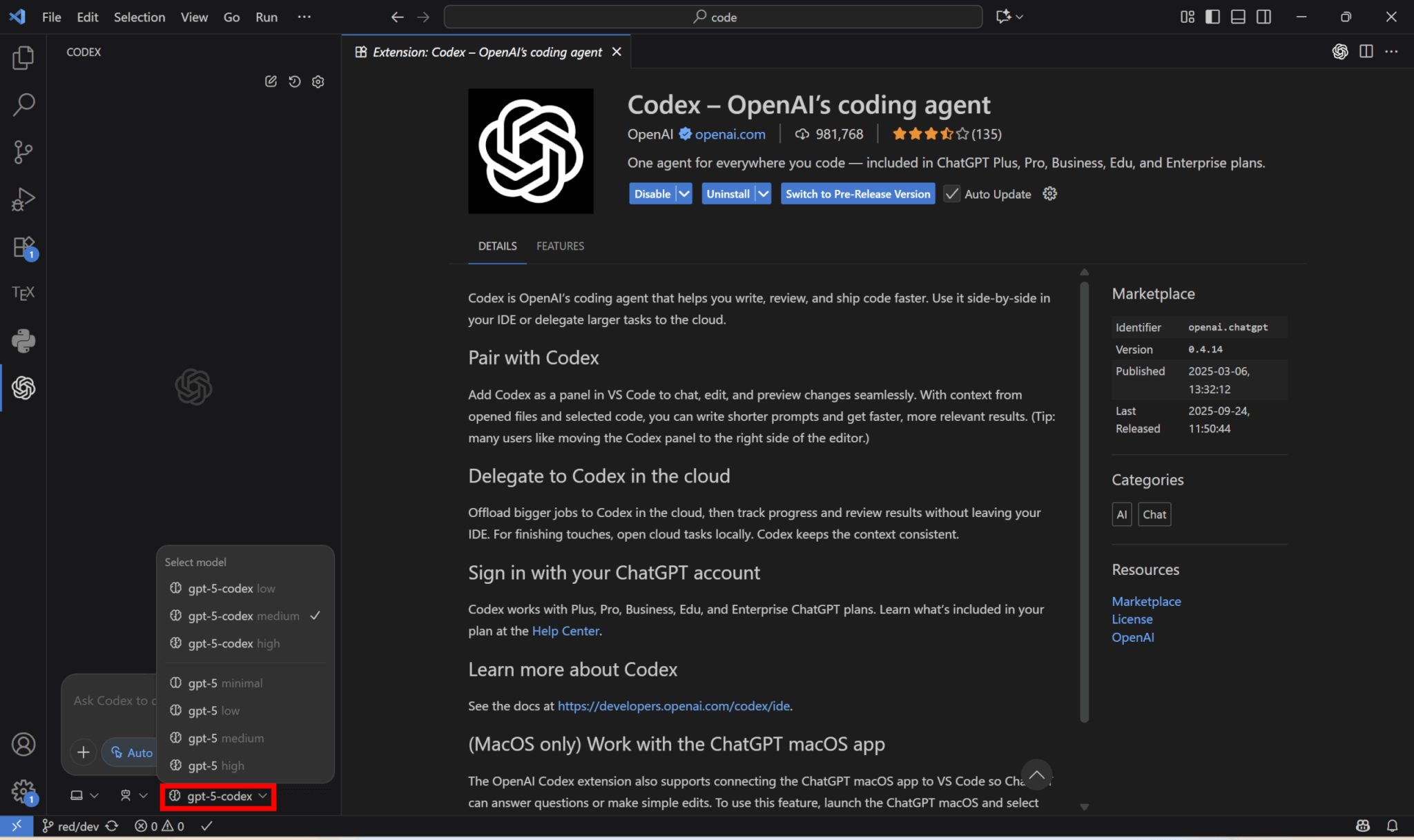 GPT-5をベースとしていますが、ソフトウェア開発タスクでより高い性能を獲得し、自律実行や動的思考の能力も備えています。