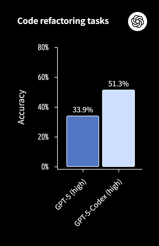 GPT-5-Codexは、これまでのモデルと比べて高い精度と自律性を実現しました。