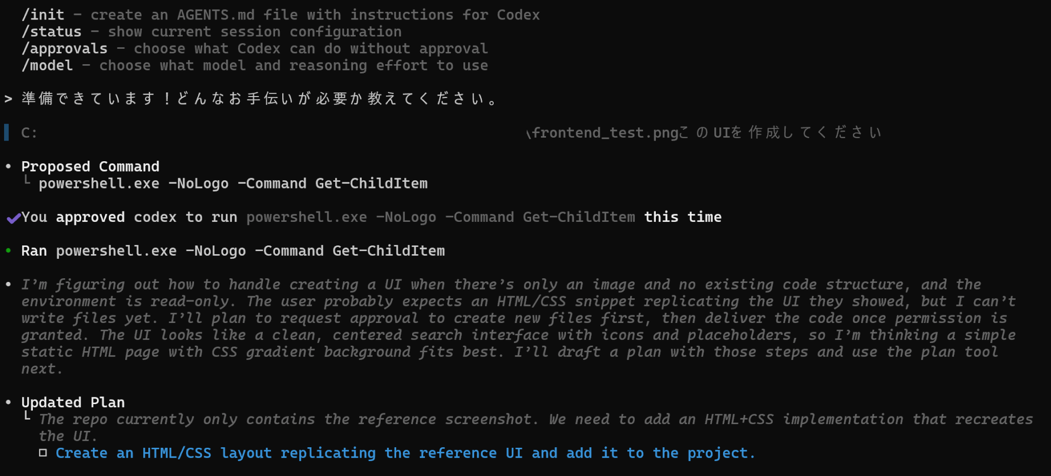 ここではCodex CLIを使って画像をもとに簡単なフロントエンドを実装する流れを見ていきましょう。