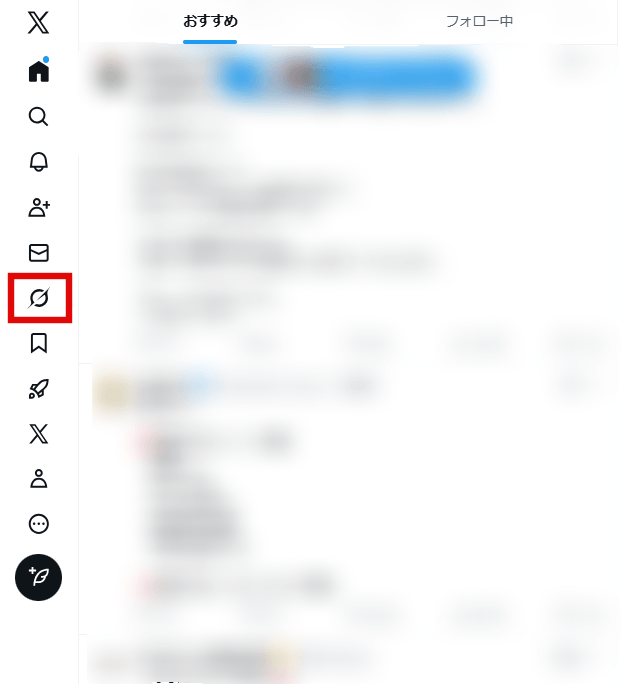 Xを開き、Grokを選びます。