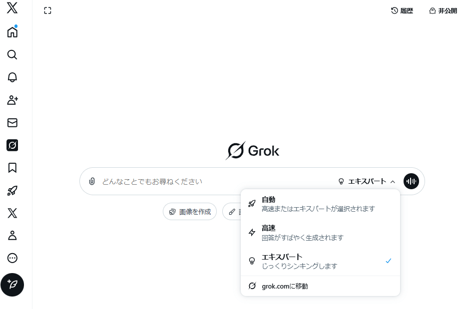 Grokでは、用途や回答スタイルに応じて複数のモードを選択できます。モードによって回答速度や推論の深さが異なるため、目的に合わせて使い分けることが重要です。