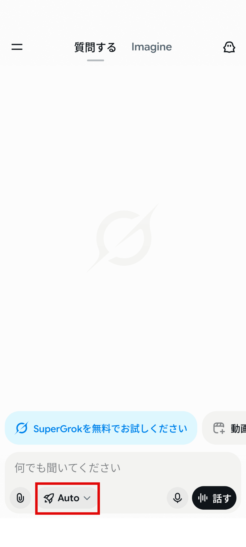 Grokを開いたら、モードを選択し入力欄に指示を入れます。