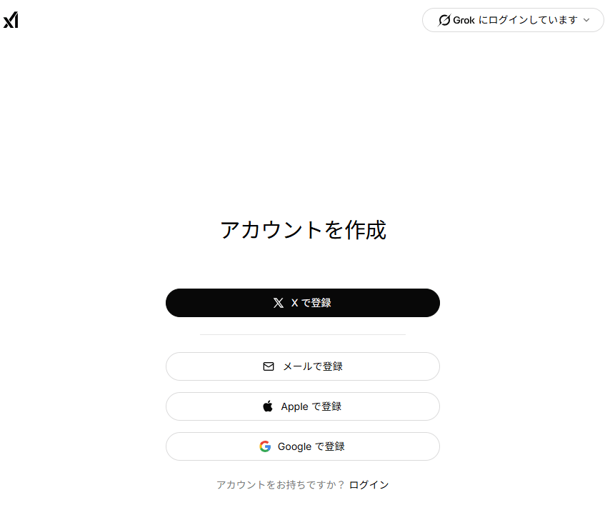アカウントを作成します。X・メール・Apple・Googleアカウントでもログインできます。