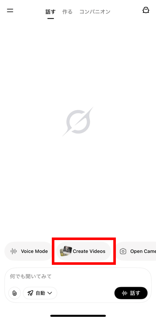 Grokアプリを起動すると下のように最初に「話す」の画面が表示されます。