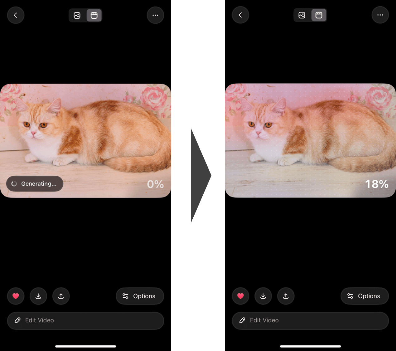 また、「Edit Vedeo」の欄にプロンプトを入力して、好みの動作などを指示することも可能です。