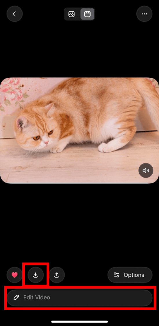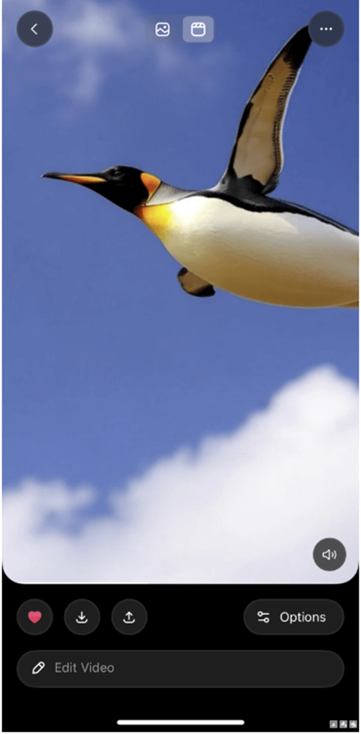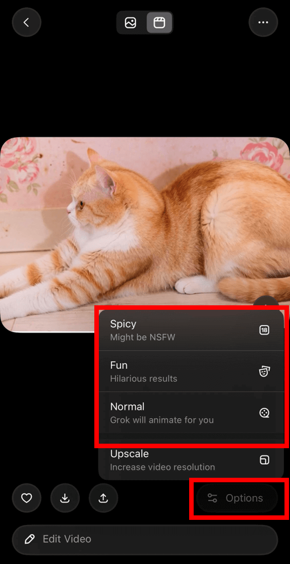 生成された動画は前述のように保存や「Edit Video」からの編集、「Options」からモードの切り替えが行えます。