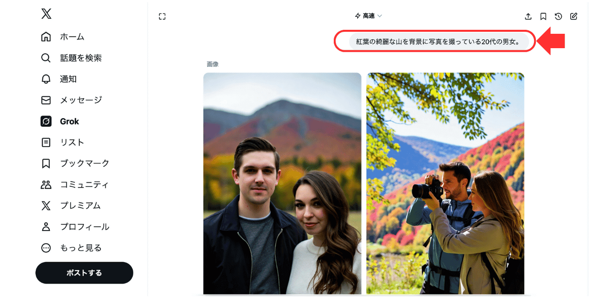 ユーザーがプロンプトを入力すると、Grokが理解し、プロンプトに応じた画像を生成する仕組みです。
