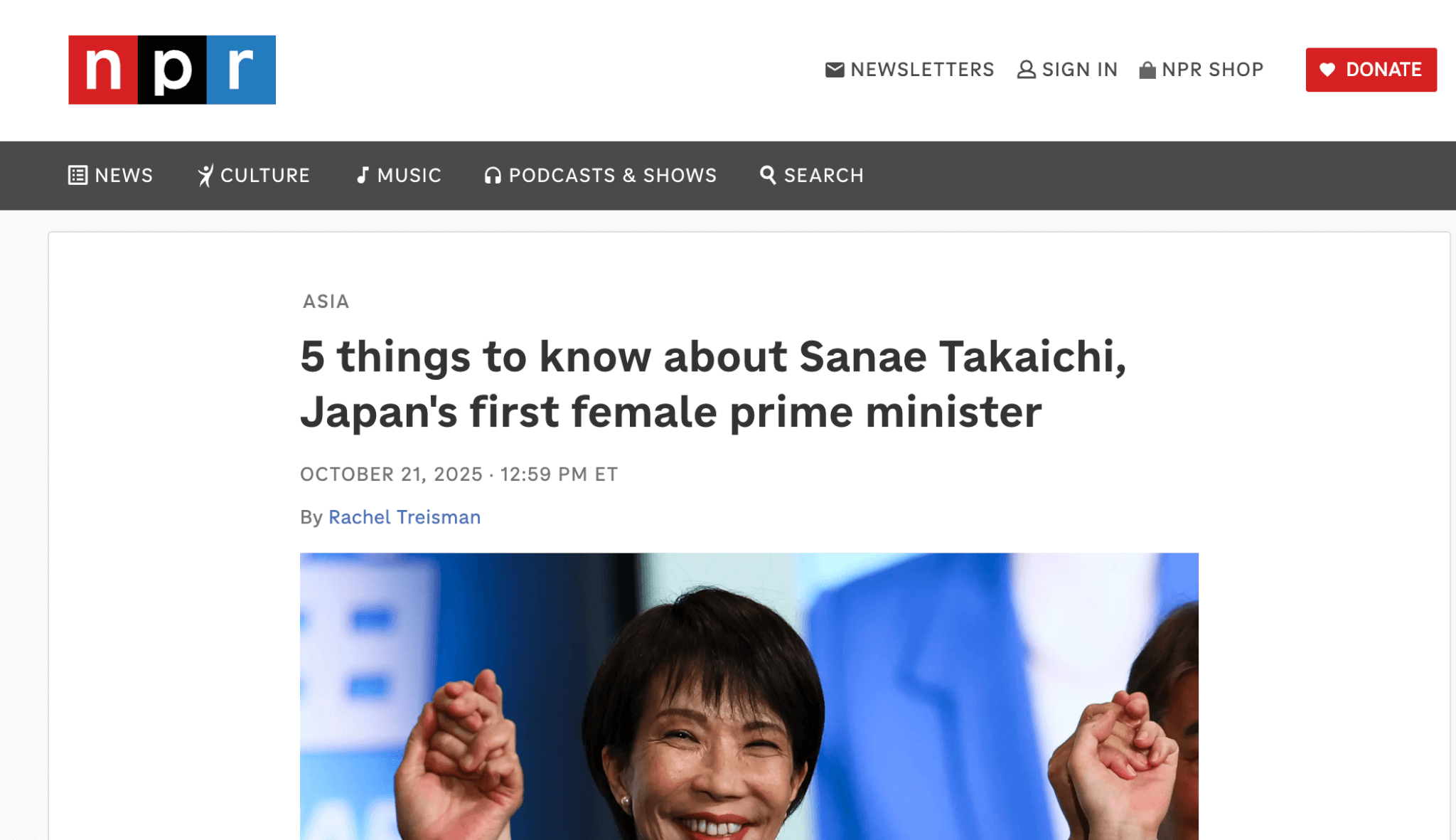 今回は日本の首相である「Takaichi Sanae(高市早苗)」と検索してみました。