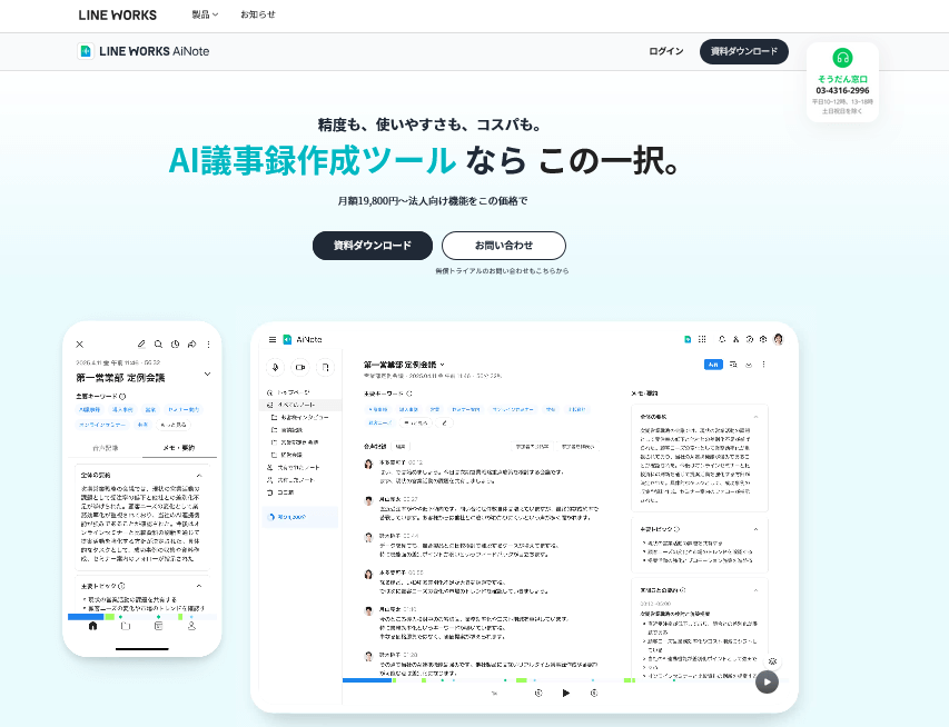 業務利用や運用に便利な「LINE WORKS AiNote」