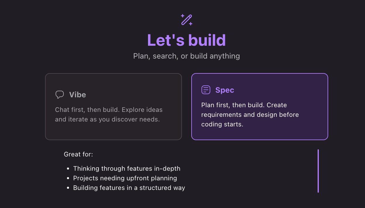 従来の「コードを書いてから整える」スタイルとは異なり、Kiroでは最初に仕様(Spec)を定義し、それを基にAIエージェントが自律的に実装を進めます。