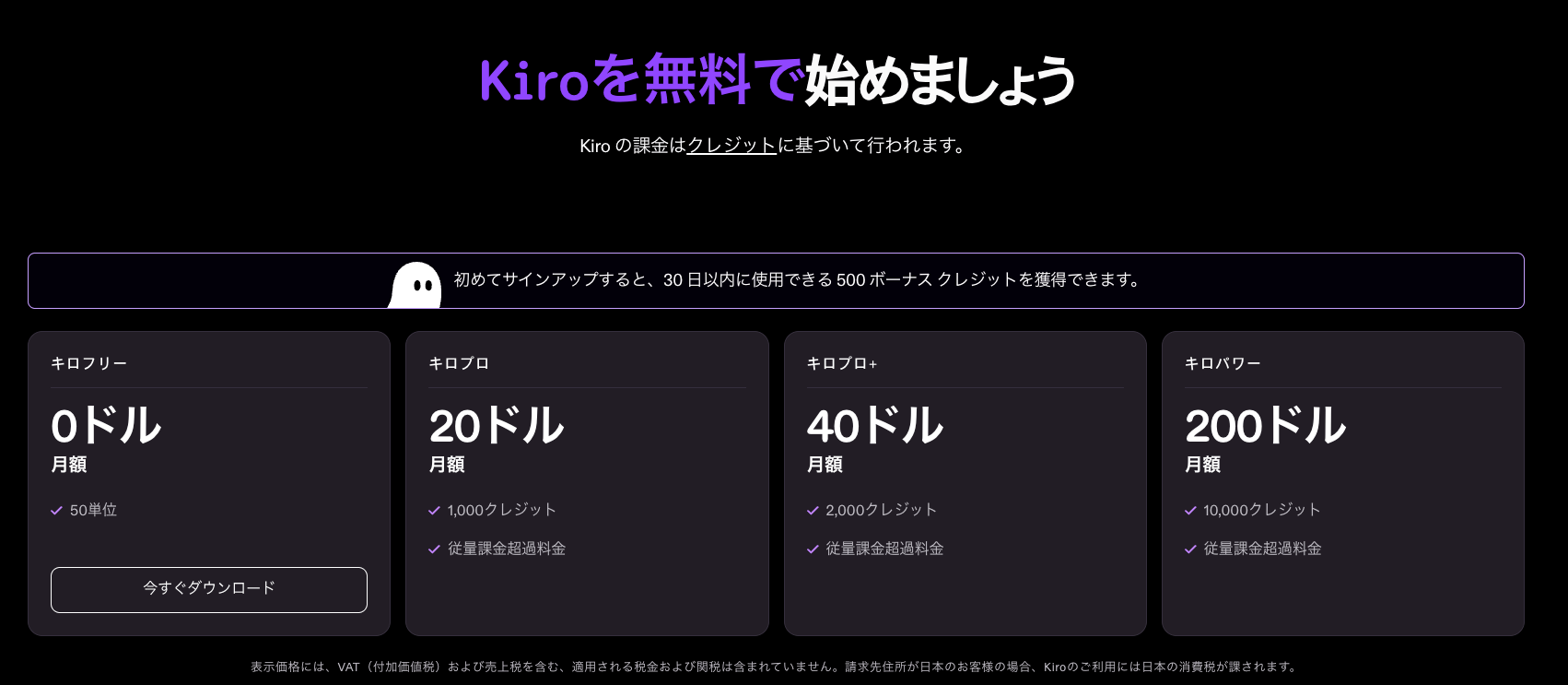 Kiroの料金体系と月間クレジット上限を整理|無料で試すには?