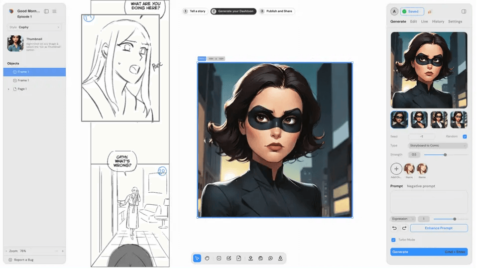 Comic AI Generatorは、キャラクターや背景をAIが自動生成し、漫画制作を効率化する革新的なツールです。