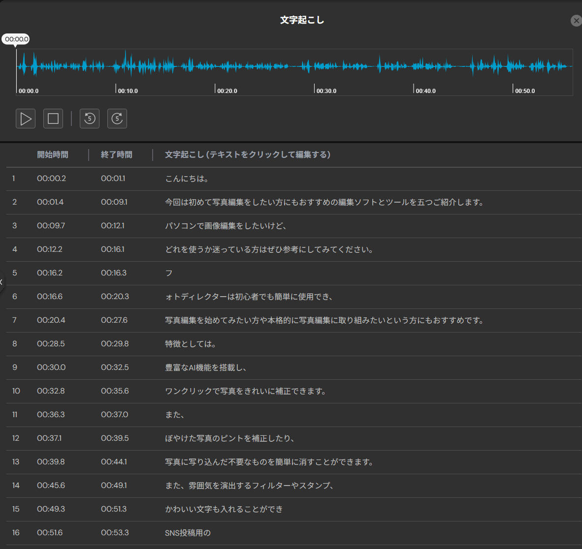 生成が完了すると、数秒ほどで文字起こしが完了します。