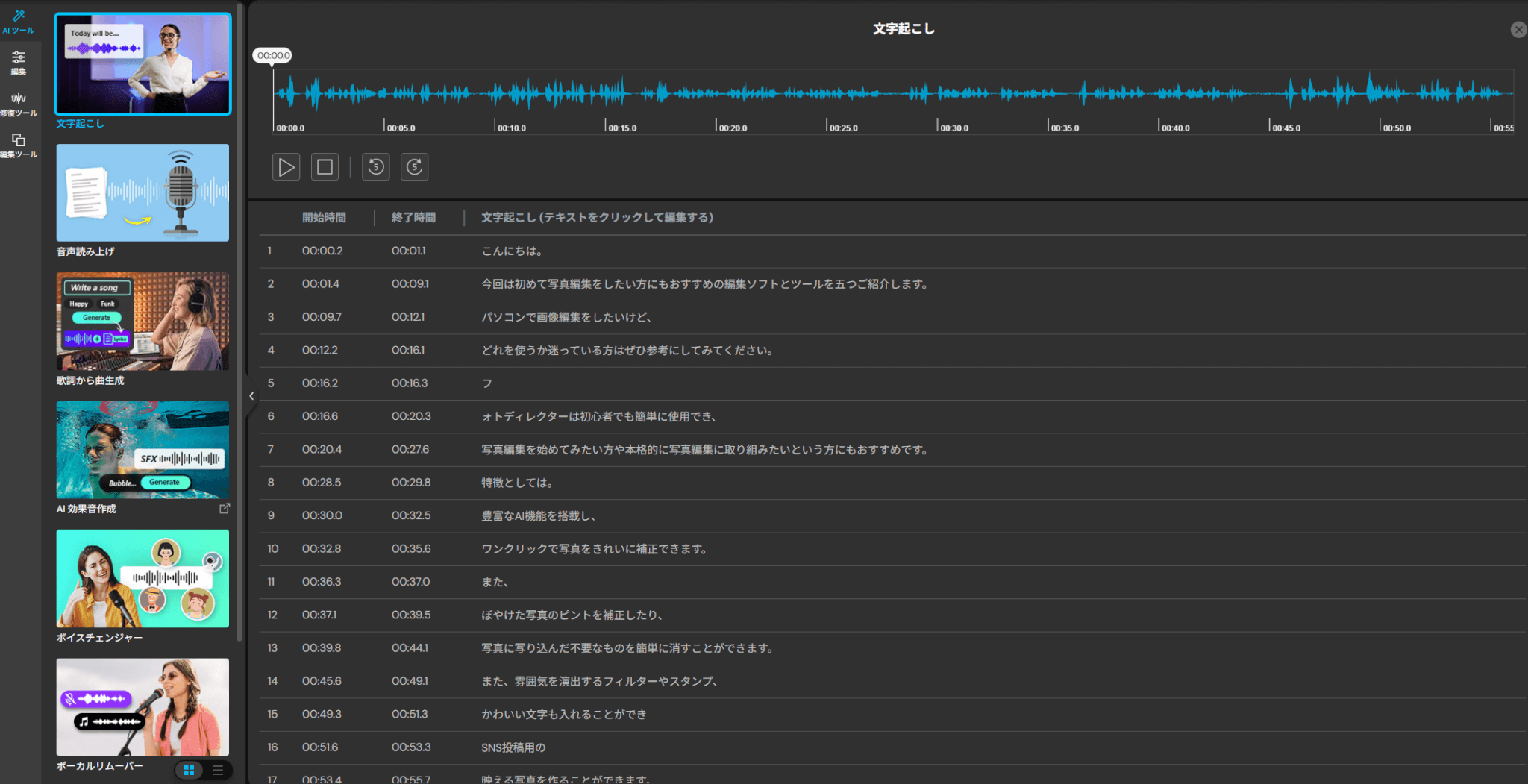 このツールを使えば、画像や音声、動画の編集、文字起こしなどが簡単に行えます。