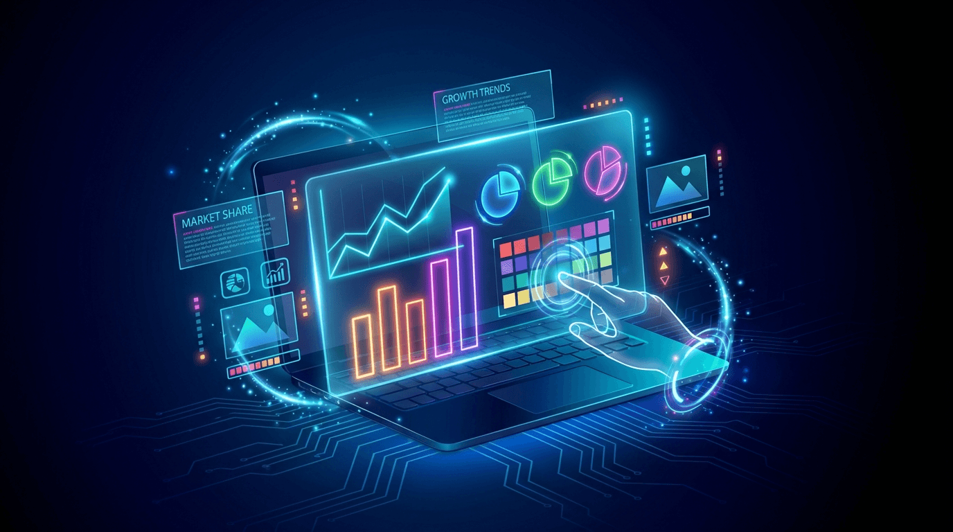 社外への業績の報告や市場の分析結果を説明するためのスライド素材を生成します。