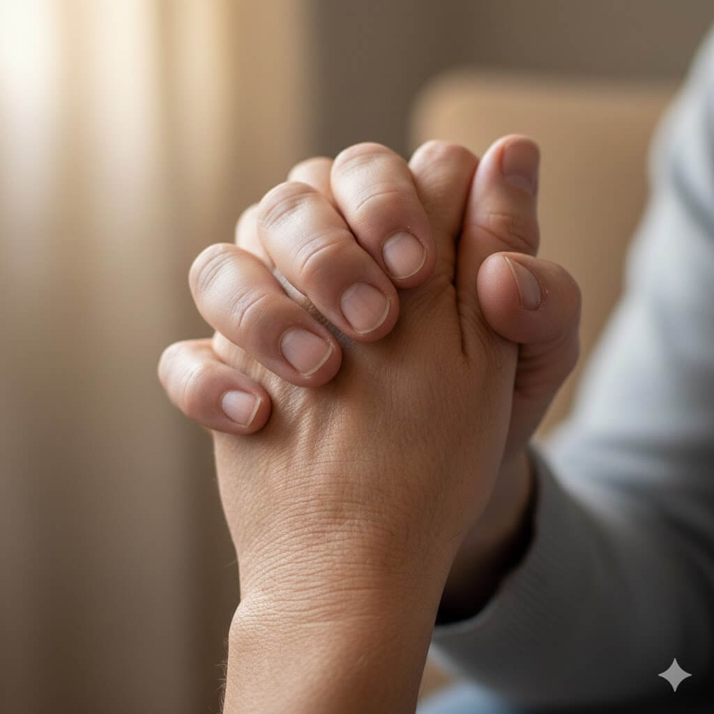 「ふたりの人間が指を絡めた手の画像を生成して」というプロンプトで画像生成しました。