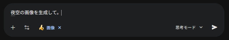 生成された夜空の画像の右下にGeminiスパークルのロゴが付いていることからわかるように、Google AI Proプランで生成した画像は透かしが自動で付与されます。