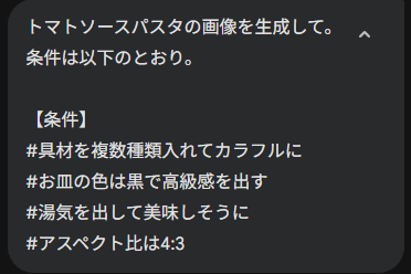 抽象的な表現や情報量の少ない指示では、ユーザーの意図と異なる仕上がりになることがあります。その場合は、被写体・背景・構図・雰囲気などを具体的に箇条書きで指示すると、精度が向上しやすくなります。