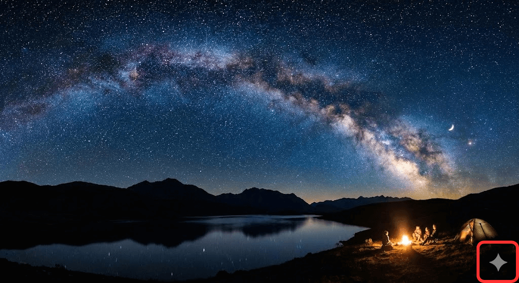 無料プラン・Google AI Proプランで生成された画像には、画像内にGeminiスパークルのロゴが表示されるため、Googleの生成AIで作られた画像と判断できます。