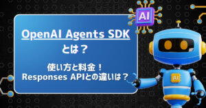 OpenAI Agents SDKとは?使い方と料金!Responses APIとの違いは? OpenAIは2025年3月、AIエージェント開発をより簡単に効率的にする環境としてOpenAI Agents SDKとResponses APIをリリースしました。 このうち、OpenAI Agents SDKはオープンソースのAIエージェント用のソフトウェア開発キットです。 複雑な連携ロジックを抽象化し、ツール呼び出しや複数エージェントの協調を容易にし、Responses APIを基盤としてより高度なエージェントの構築を支援します。 2024年に試験的に提供されたAIエージェント用フレームワークswarmの発展版となっており、AIマルチエージェントを簡単に自分のアプリに組み込むことも可能です。 本記事では、OpenAI Agents SDKの概要や特徴、使い方、Responses APIとの違いをわかりやすく解説します。