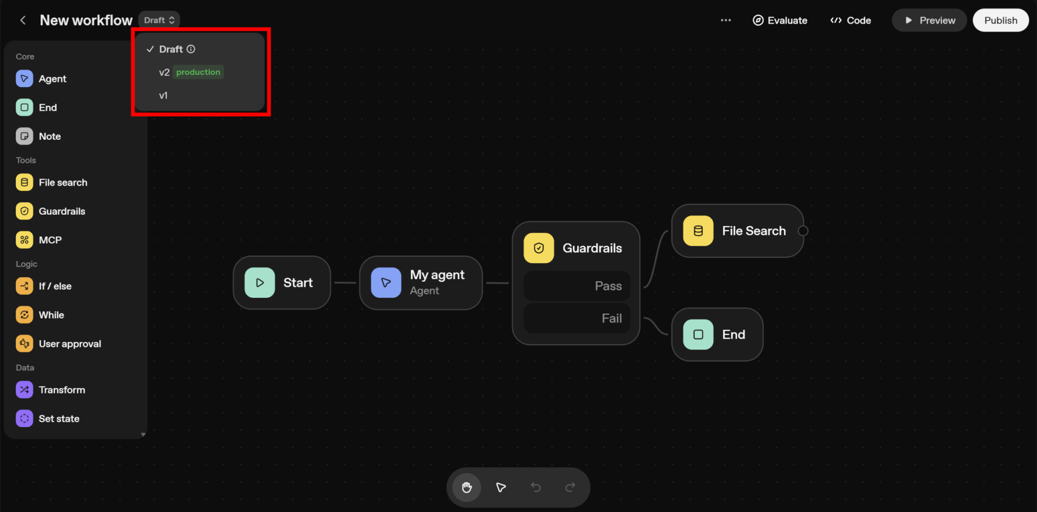 Agent Builderは、エンタープライズ運用に求められる厳格な変更管理とガバナンス機能を提供します。