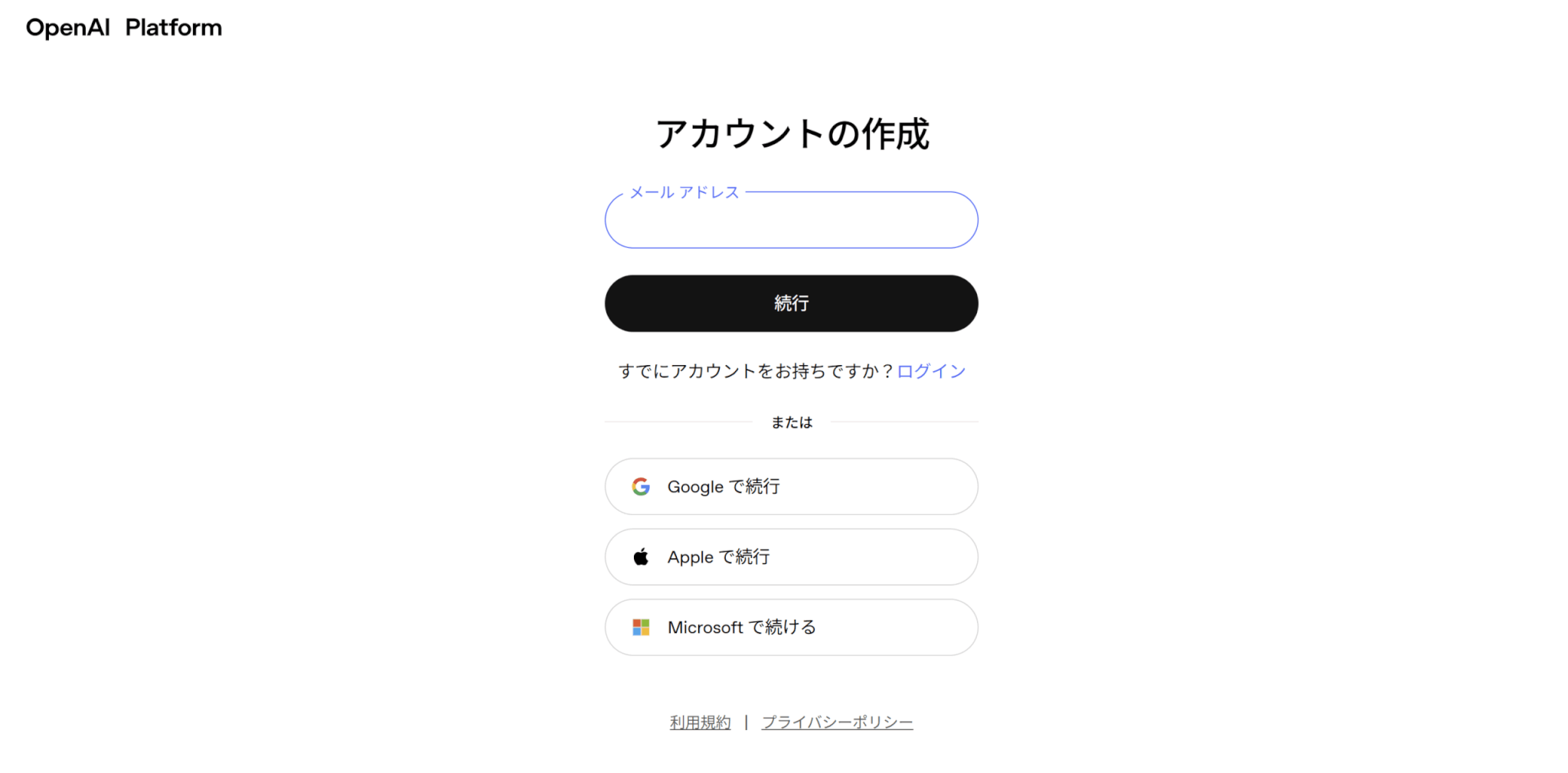 もしアカウントを持っていない場合は、メールアドレスやGoogleアカウント等でサインアップしましょう。